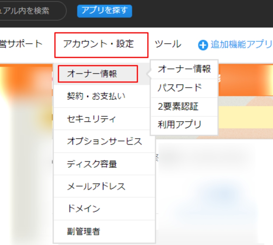 画面上部の共通メニューより「アカウント・設定」>「オーナー情報」をクリックして、商品の各種情報を入力する画面に移動します。