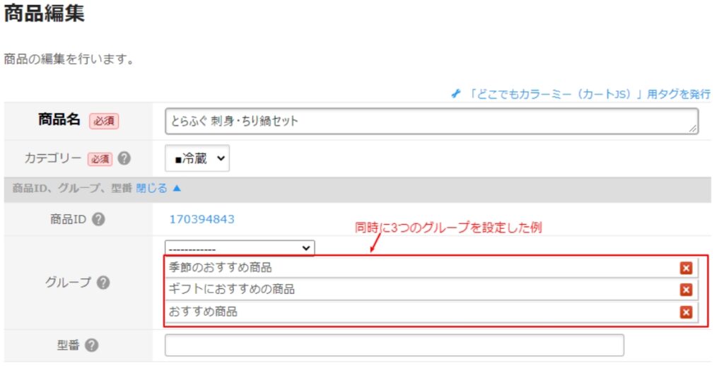 当ショップではトップページの「おすすめ商品」の3商品と、サイドメニューの「季節のおすすめ商品」「ギフトにおすすめ商品」が該当する。それぞれ該当するものを選択してください。