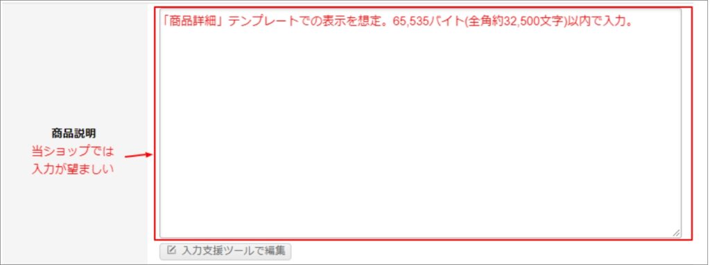 当ショップでは商品説明部分のみの記入で、スマートフォンショップ用説明の箇所への記入は不要。