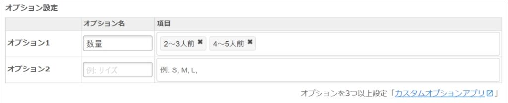 (2) オプション一覧から各項目の販売価格の設定をする。